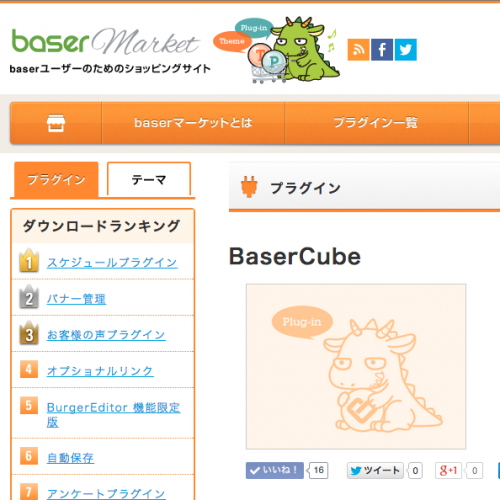 続いてプラグイン「baserCube」をインストールしていきます。公式マーケットからダウンロードできます。今回使用したバージョンは1.0.0です。