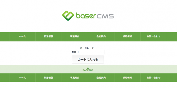 baserCubeで商品情報を表示すると、一緒にカートボタンの出力用タグが表示されます(下図)